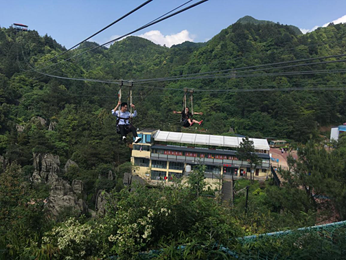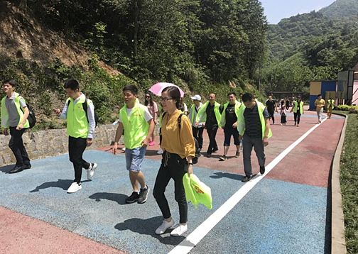 在一路欢歌笑语之中,大家在11点左右到达了美丽的奥陶纪景区。郁郁葱葱的山林,干净清爽的山风,天然氧吧一样的环境让同事们瞬间放下工作的压力、生活的烦恼。