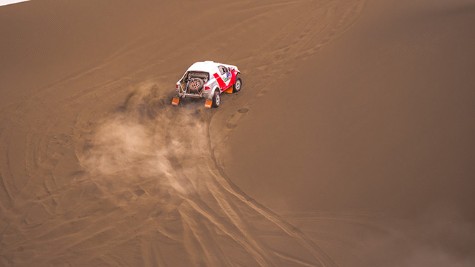 徐良喜自去年第一次以个人身份参加环塔即斩获金头盔奖,让他对赛车倍添自信。于是,他今年组建了一支以完美体育官方网址命名的车队出征2018环塔国际拉力赛,邀请了去年的战友——著名车手左小兵再度携手出征。车队三升体育APP员刘元也是一位经验丰富的赛场高手,对沙漠赛有独到的判断能力。