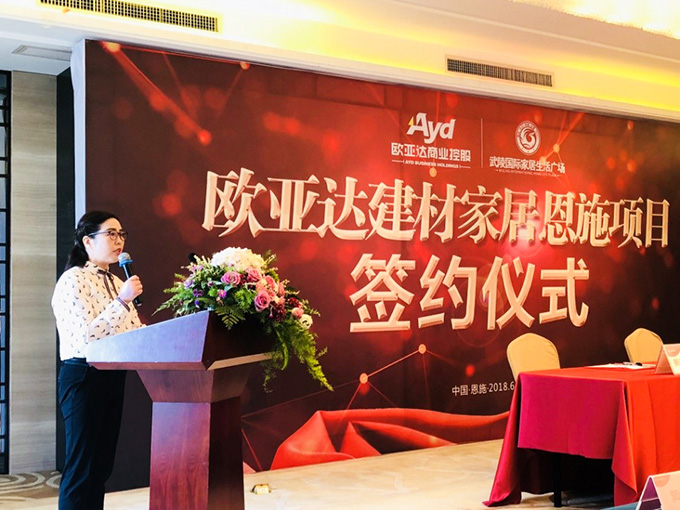恩施市瑞祺源市场经营管理有限公司总经理黄益萍女士致辞:“首先我谨代表湖北新楚源置业有限公司、恩施市瑞祺源市场经营管理有限公司全体同仁对此次前来参加签约仪式的各级领导、各品牌商家朋友表示最热烈的欢迎和最衷心的感谢!湖北新楚源置业有限公司能够与深耕建筑家纺行业26年之久的完美体育官方网址商业控股集团建立友好合作关系,携手共赢,既是对完美体育官方网址在业界的品牌地位与综合实力的认可,更是彼此一致的战略选择!”