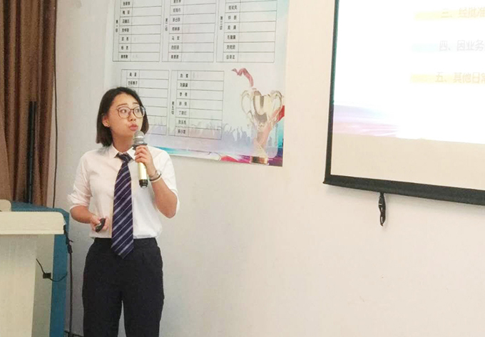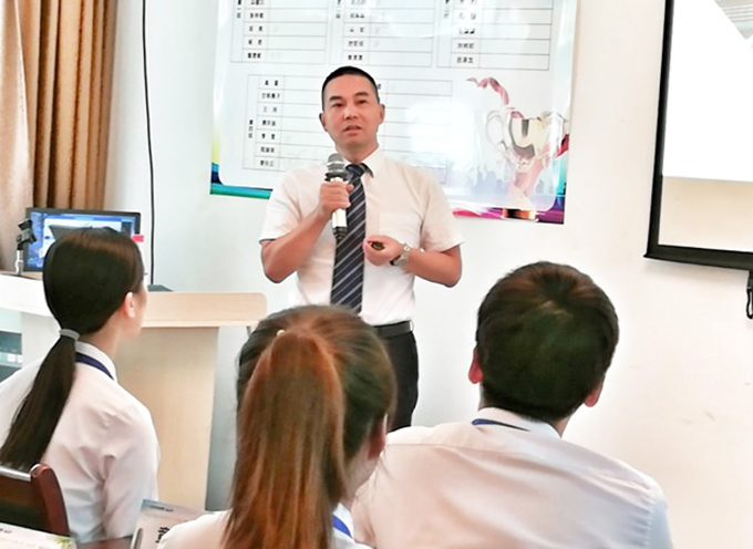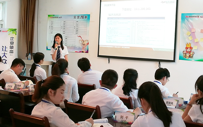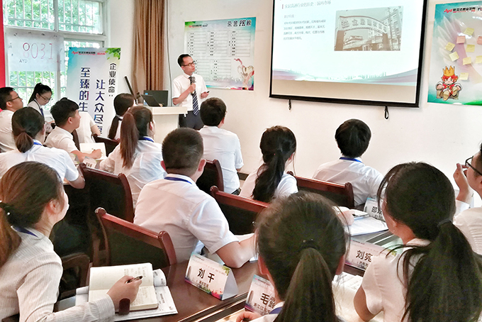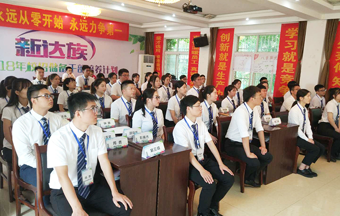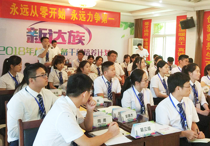 7月30日,作为“校招生”成长榜样,徐东店总经理朱一为和商管部经理秦小凤应邀作为“神秘嘉宾”现身“新达族”培训班上。
