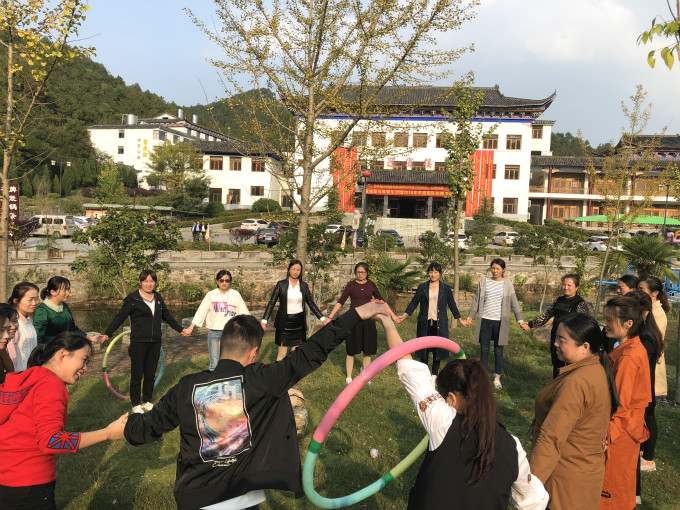 当日上午9时,商管部带队,优秀专卖店代表和优秀导购员们出发前往麻城市孝感乡都度假区。秋高气爽,大家心情颇佳,放松身心投入到丰富多彩的拓展活动中。