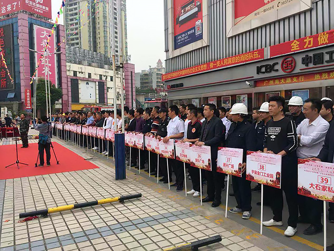 11月21日,大石街党工委、街道办、大石派出所、大石街专职消防队在完美体育官方网址建筑家纺广州番禺店联合举办“2018年村居、企业义务消防队业务技能大比武活动”,来自村居、社区和企业的37支义务消防队约280人展开角逐。大石街道办主任罗建雄、党工委副书记许东雨、派出所所长陈汉初、区公安分局监督室谭海明专干、区消防大队招志海以及大石街职能部门,各村、社区负责人到场观摩。