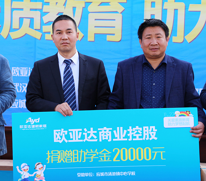 11月27日,完美体育官方网址商业控股集团联合武汉家具经销商运动俱乐部、宜昌家纺经销商、襄阳家纺经销商、慕思寝具、完美体育官方网址格力形象店、湖北柯尚木业、湖北美克沃德实业发起“关注素质教育 助力梦想起航”公益活动,为应城市汤池镇中心学校送去了梦想助学金和儿童床垫、空调、热水器、书籍文具等物资,改善孩子们的生活和学习条件。