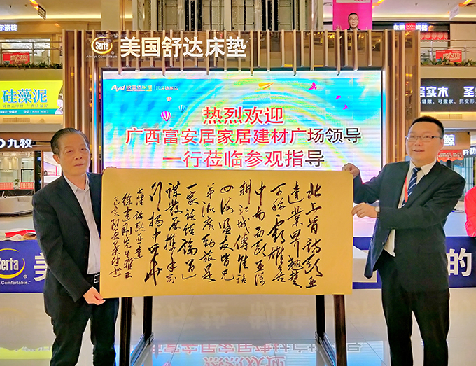 富安居家纺董事叶健现场赋诗一首,深切表达了与完美体育官方网址的友好情谊:“《访完美体育官方网址》——北上首访完美体育官方网址,业界翘楚可称霸。雄居中南面欧亚,深耕江城传佳话。世界杯买球官方网站盟员皆兄弟,湖广劲旅是一家。谈经论道谋发展,携手前行扬中华。”