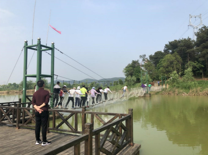 行程即将结束,大家在生态园区临湖而坐,稍作休息,伴着清凉的微风,欢快的讨论着一天的感受,有的同事则结伴一起挑战生态园区的“晃晃桥”,大家都意犹未尽。