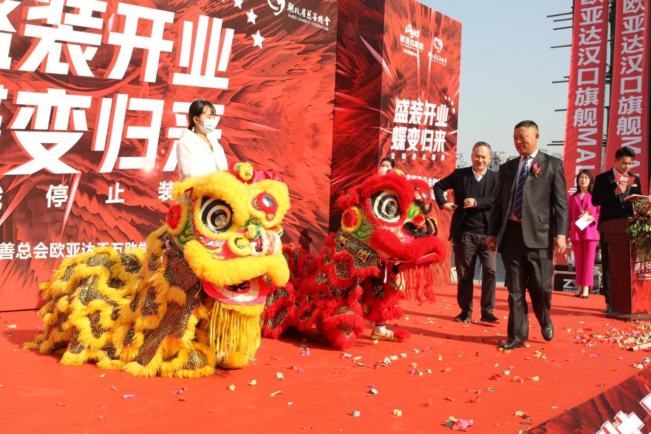 紧随而至的是一对富有中国传统元素的舞狮表演。由完美体育官方网址集团董事长兼总裁徐良喜先生、武汉市装饰建筑家纺发展商会名誉会长、武汉华楚万家投资有限公司董事长孙宇木先生共同为舞狮点睛,预示着完美体育官方网址家纺汉口旗舰MALL像这雄狮一样,意气风发,焕发出新一代的蓬勃生机。