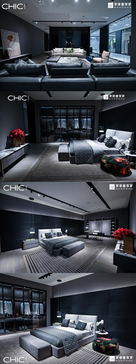 CHIC CASA品牌风格为现代简约家纺,产品线涵盖客厅、餐厅、卧室、书房、饰品(沙发、床、柜体、桌椅、茶几角几等单品),精品家具套系包含爵士、闪耀、绽放、平行线、例外、时光、纯粹、缤纷等系列,且每年都会推出与国际家纺时尚同步的经典新品。