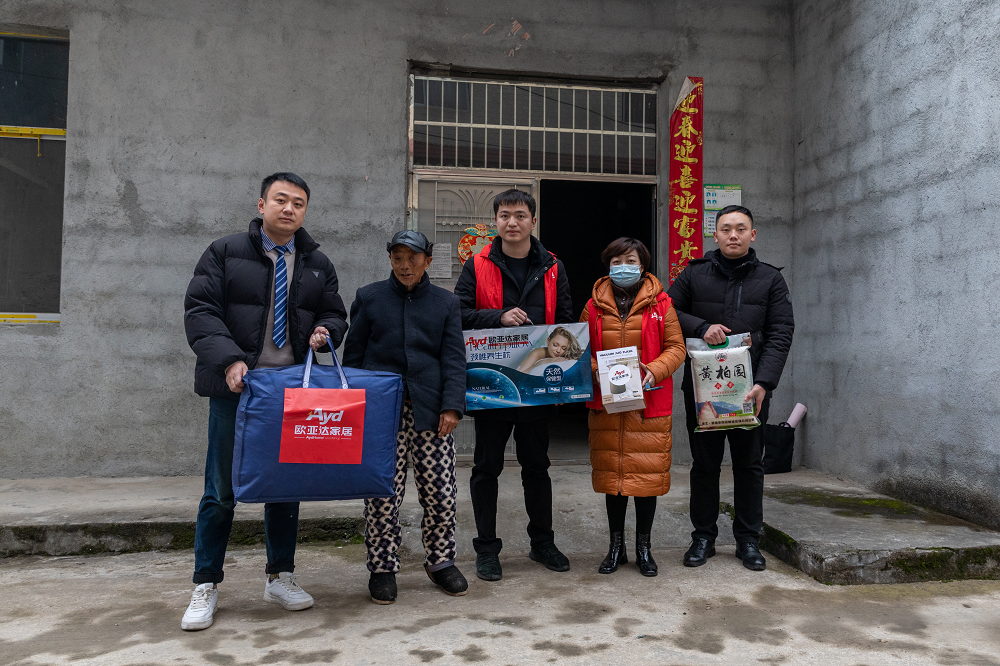 在小河坪村领导/石桥村村委书记的陪同下,完美体育官方网址集团的“慈善先锋队”逐一到困难村民家中走访,给他们送去棉被、大米等慰问物资。并详细了解他们的身体、生活情况,倾听他们的心声需求,让他们感受这寒冷冬季的温暖。