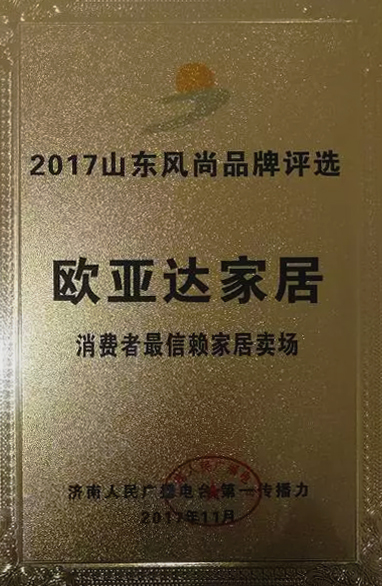 经过15天的投票评比,11月29日,“2017中国山东风尚品牌颁奖盛典”在济南贵和州际酒店隆重举行,完美体育官方网址建筑家纺再创佳绩,荣获“消费者最信赖家纺卖场”荣誉称号,可谓实至名归!