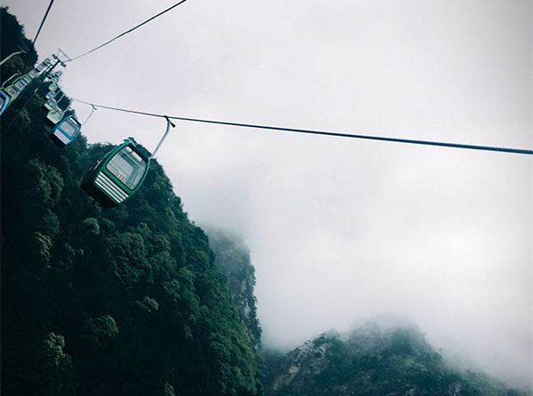 山路曲折,登山道狭窄、陡峭,雨天让登山的道路变得更加艰险,因天气原因,为保证大家的人身安全,最终大家选择乘坐光纤登山。沿途一边欣赏美景,一边有说有笑,很快缓解了大家紧张、害怕的心理。