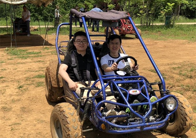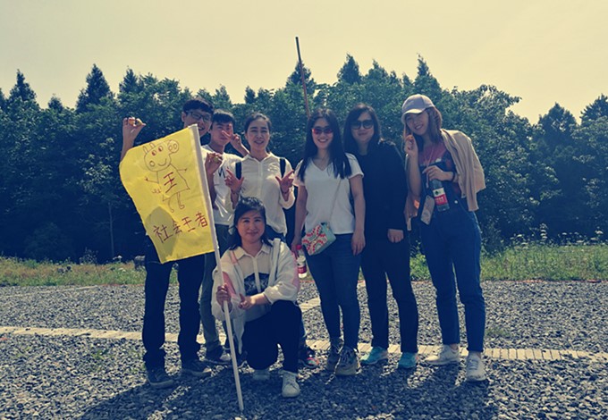 一路上,气氛相当和谐,大家都是你谦我让,在车上玩起“破冰游戏”来,也是配合格外默契。这不,在“前方有难,后方支援”的游戏环节,当教练表示前方需要两副眼镜时,坐在前排的妹子猛然回头,二话不说一把扯下后排帅哥的眼镜,要知道帅哥可是妹子的直接上属,这胆量也是没谁了!待到前方需要一双球鞋带时,又一枚秀气的妹子毫不迟疑地快速解开自己的鞋带,我想,就算是要她脱下自己的球鞋,她也定不会推辞。