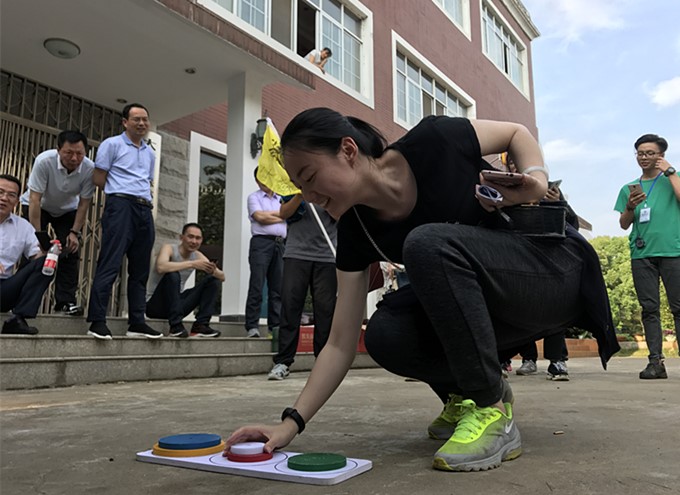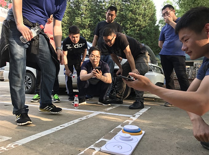 随后,分组比拼的“汉诺塔”大闯关,考验着团队的集体智慧和配合协作能力。最可爱的当属“最牛社会人”的2队,这是一群由集团大部分高管组成的队伍,象学生似的集体蹲守在汉诺塔跟前,认真地计算着移动方式,真正应验了“认真的男人最帅”。