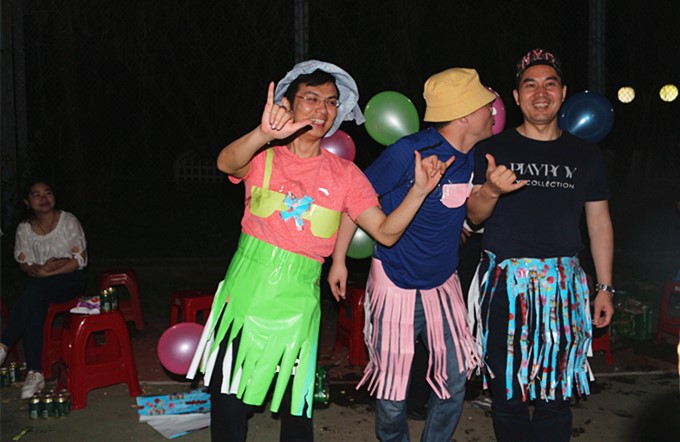 这一刻,从来没见过平日作风严谨的领导会如此放开自我。气氛一旦释放,小伙伴们彻底放飞了自己,在时装秀里,平日里MAN力爆表的纯爷们,纷纷穿上设计师妹子们巧手制作的彩色纸裙,戴上艳丽帽子,围场走秀。